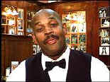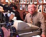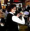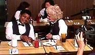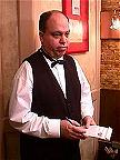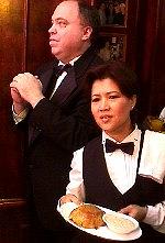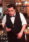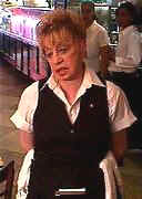 waiter is busy acting in a video!